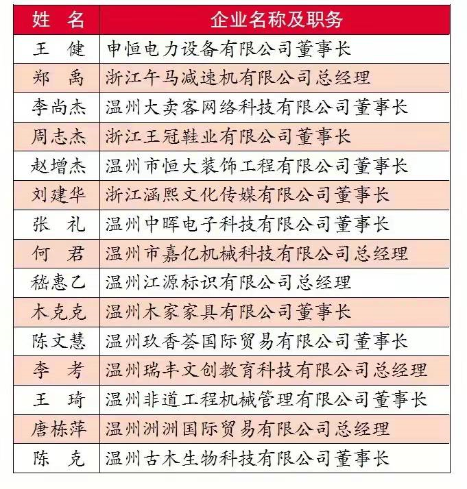 2021年溫州創(chuàng)業(yè)青年楷模名單(排名不分先后)